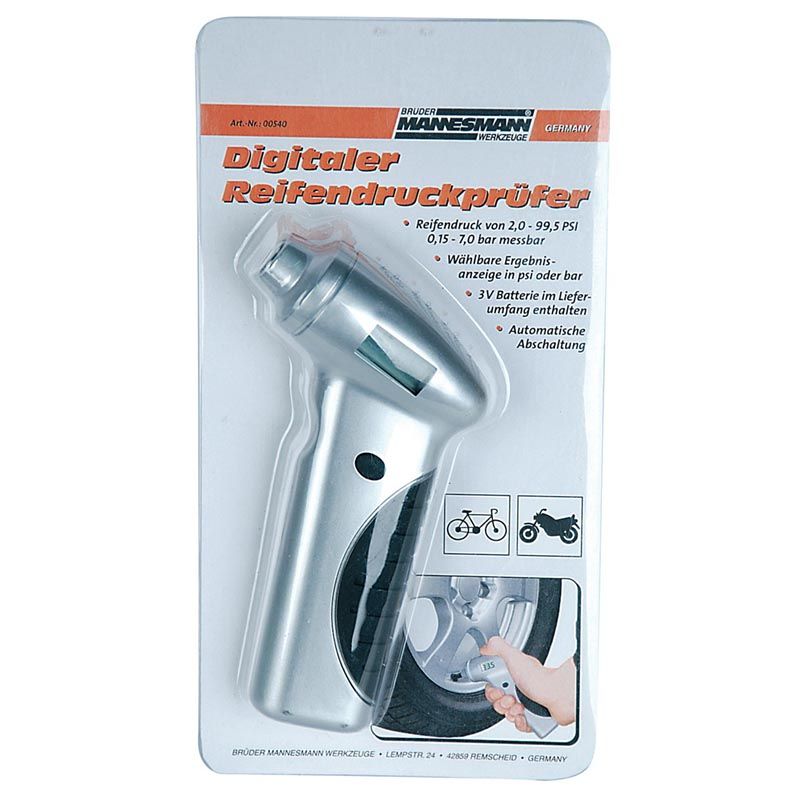 - Deze digitale meter meet de bandenspanning van auto’s, scooters, snor- en bromfietsen, fietsen, etc.
