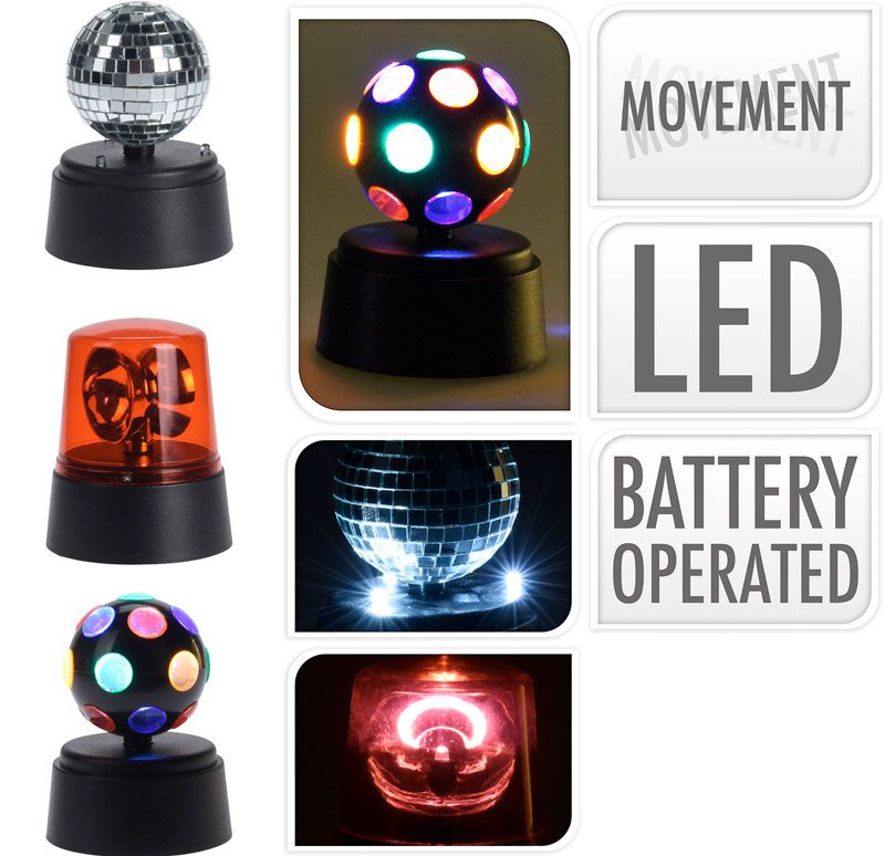 Leuke discolampen set voor de kinderen. De set bestaat uit drie kleine discolampen met elk een ander effect.