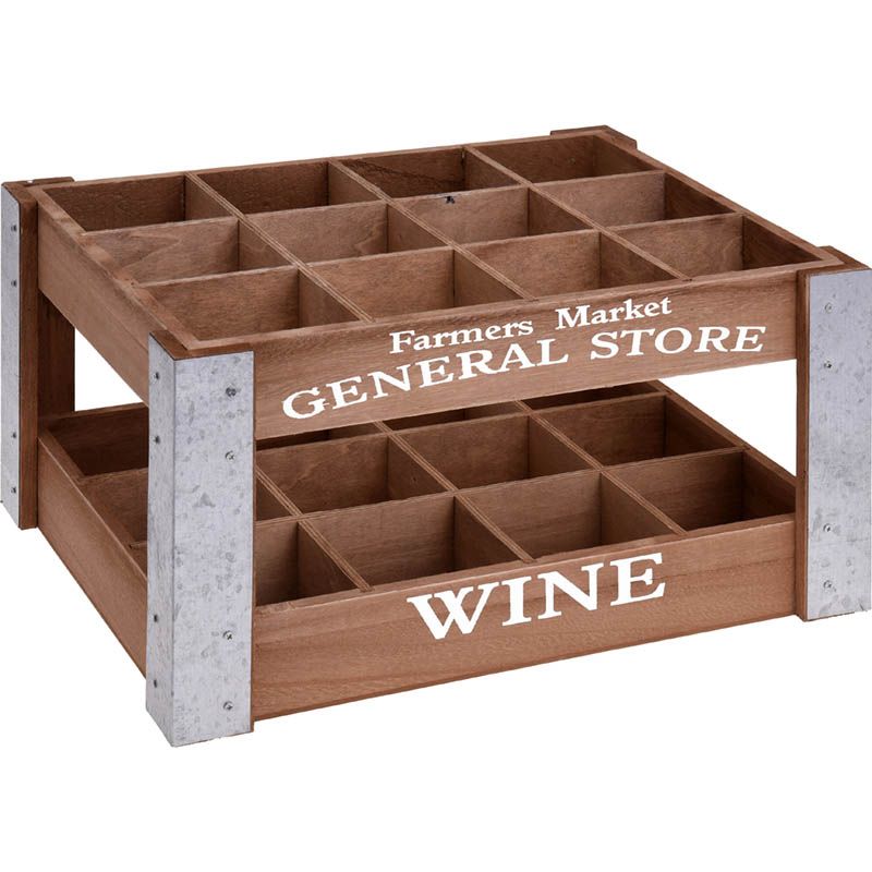 Houten wijnfles kratje in landelijke stijl met het opschrift “Farmers Market”