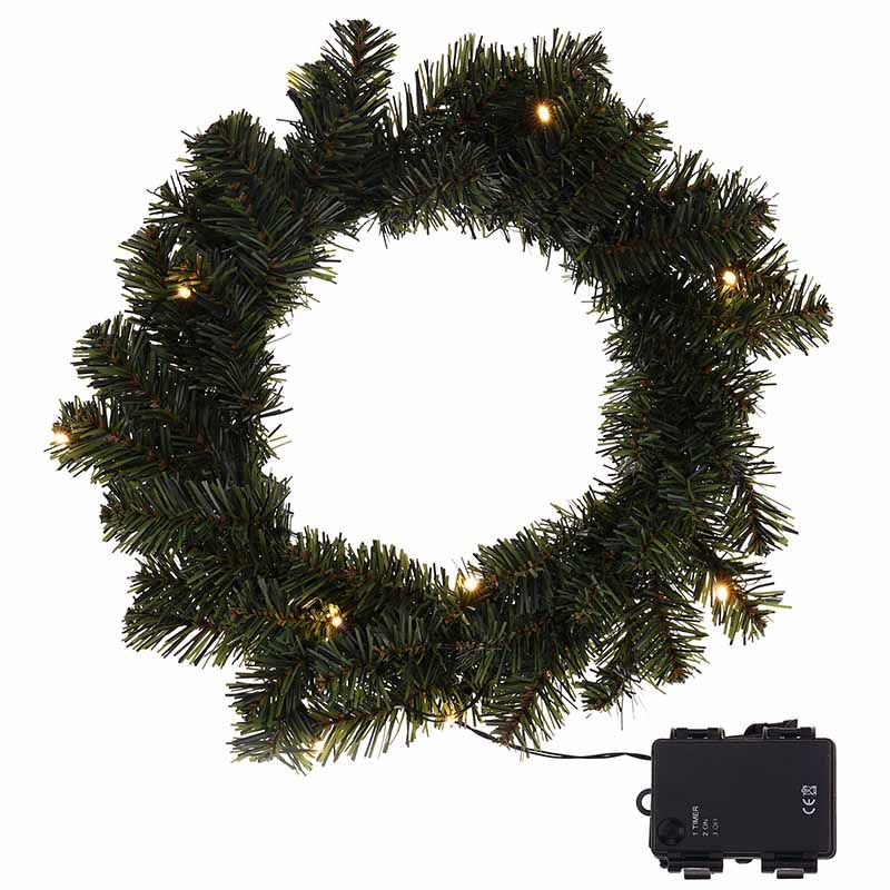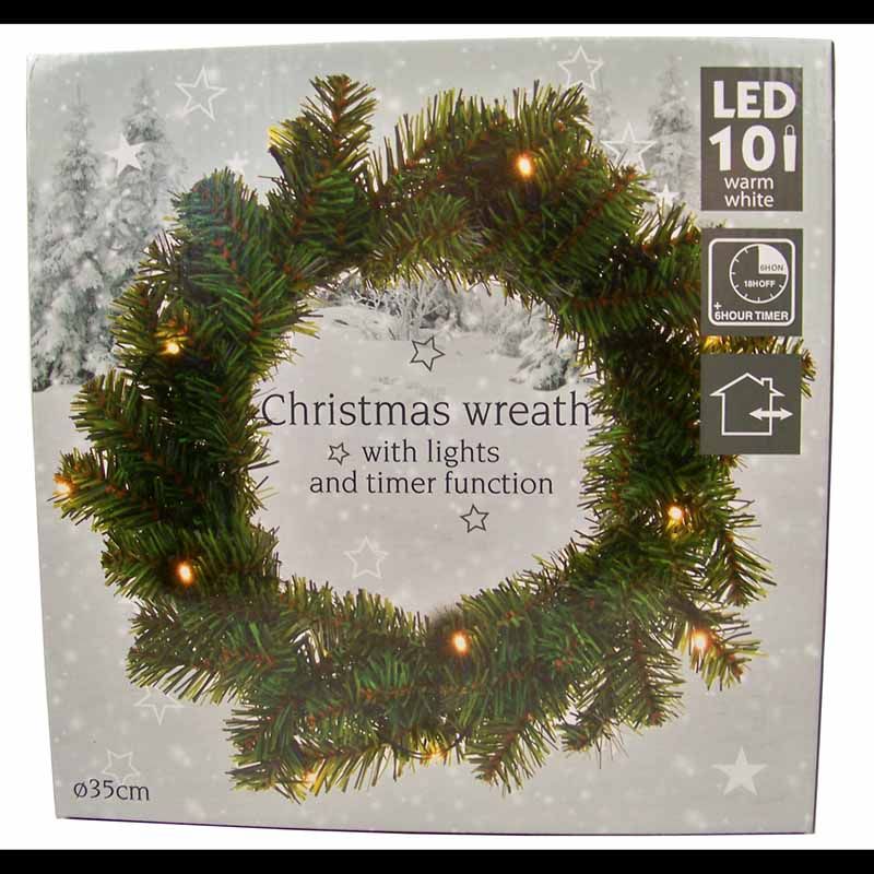 - Sfeervolle kerstkrans met 10 LED’s en een 6-uurs timer