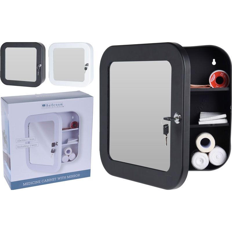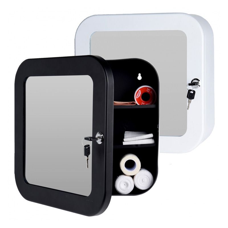 Veilig al je medicijnen opgeborgen in deze aflsuitbare metalen medijcijnenkast. Extra handig is de grote spiegel aan de voorzijde.